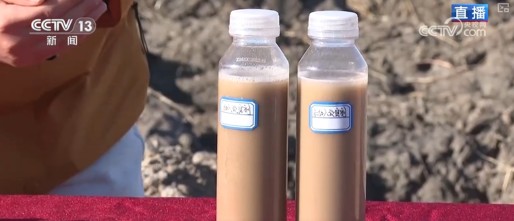 這片田采用的是有機(jī)硅改良劑來治理的鹽堿地,選取同地塊的鹽堿土溶于水中,加入有機(jī)硅后,土壤和水快速分層??梢钥吹?,有機(jī)硅具有較強(qiáng)的親土性,可以和土壤包裹一起,阻斷鹽分吸收,從而達(dá)到降堿和改變土壤板結(jié)的作用。這能讓水稻更好地扎根生長(zhǎng),渾濁的水變清澈,也可以增加作物的光合作用,有效治理重度鹽堿土壤。