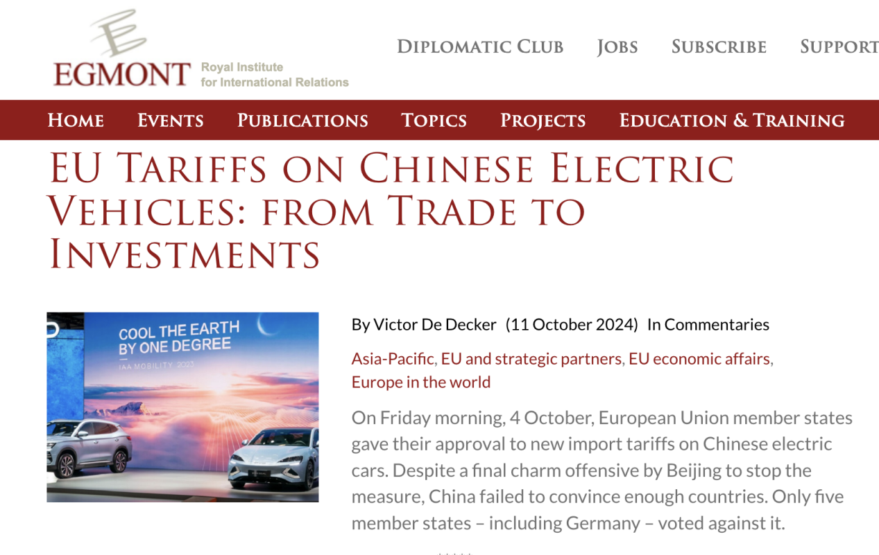 德德克10月11日文章《歐盟對中國電動(dòng)汽車的關(guān)稅:從貿(mào)易到投資》截圖
