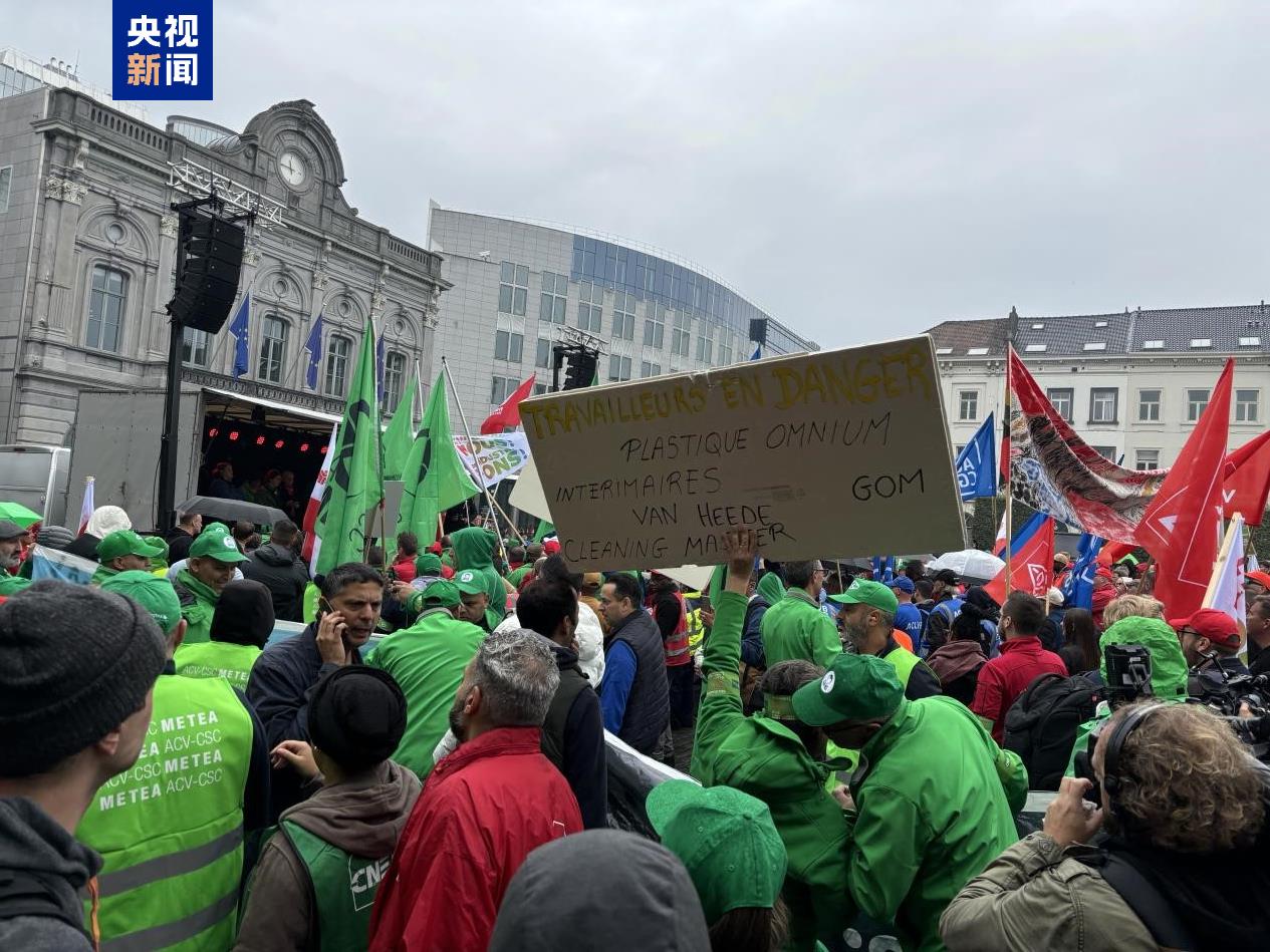 9月16日,比利時(shí)一家奧迪工廠工人在布魯塞爾市中心的盧森堡廣場舉行示威活動(dòng)(總臺(tái)記者顧鑫拍攝)