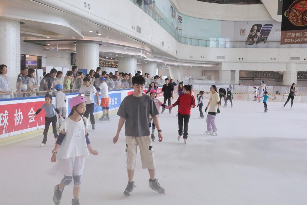 今年7月26日,人們在華潤上海萬象城冰場參加滑冰等冰上活動(dòng)。(岳遠(yuǎn) 攝)