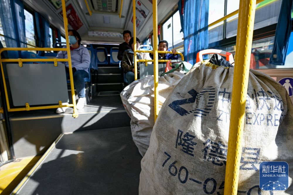 11月9日,隆德縣一輛公交車上裝有寄往鄉(xiāng)村的快遞。