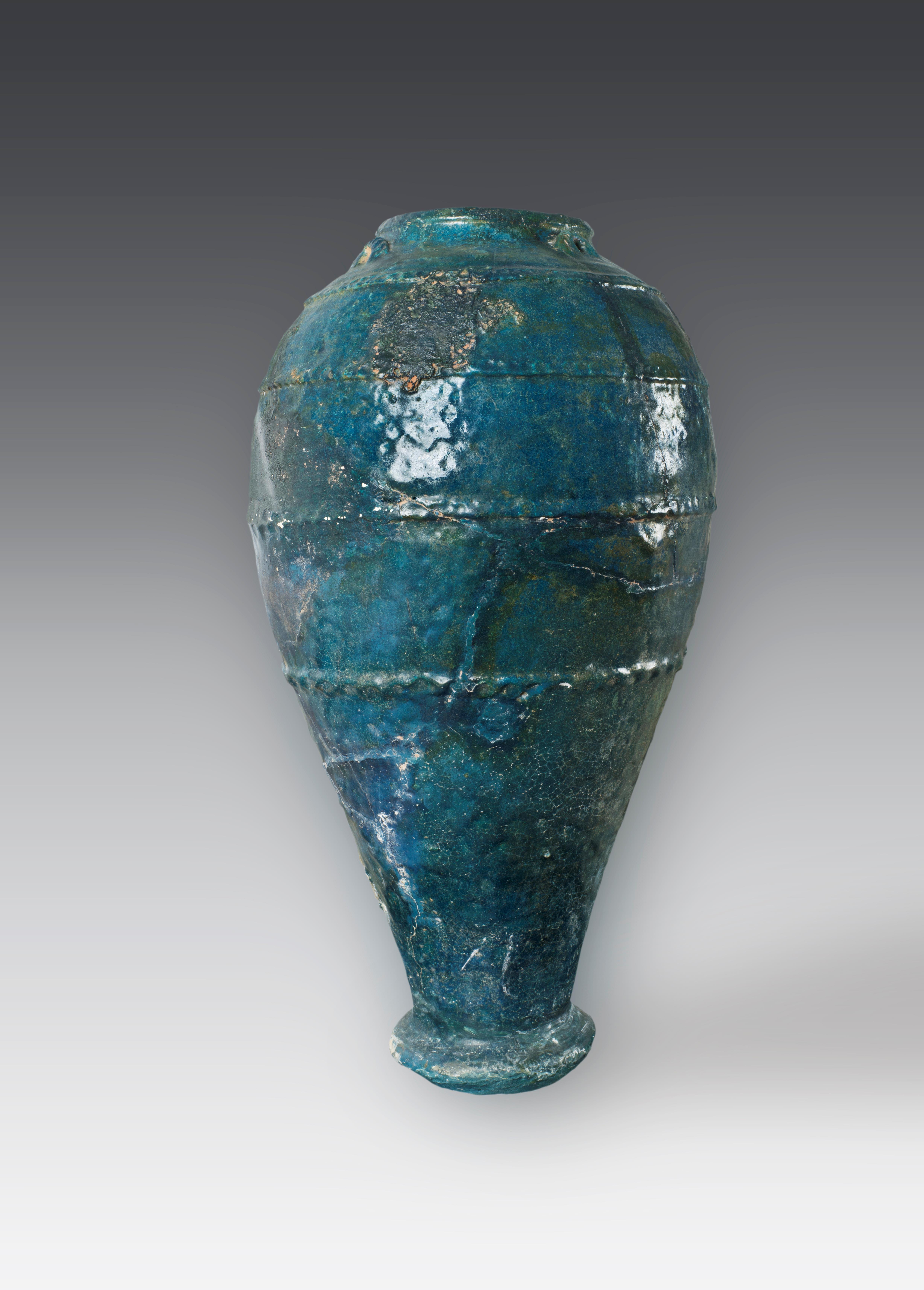 如這件來(lái)自古代波斯的孔雀藍(lán)釉陶瓶
