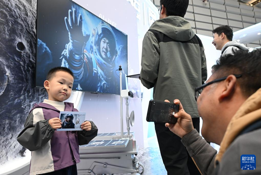 11月19日,在2024年世界互聯(lián)網(wǎng)大會(huì)“互聯(lián)網(wǎng)之光”博覽會(huì)上,一名小觀眾參與AIGC互動(dòng)體驗(yàn),并同AI系統(tǒng)生成的自己的虛擬照片合影。