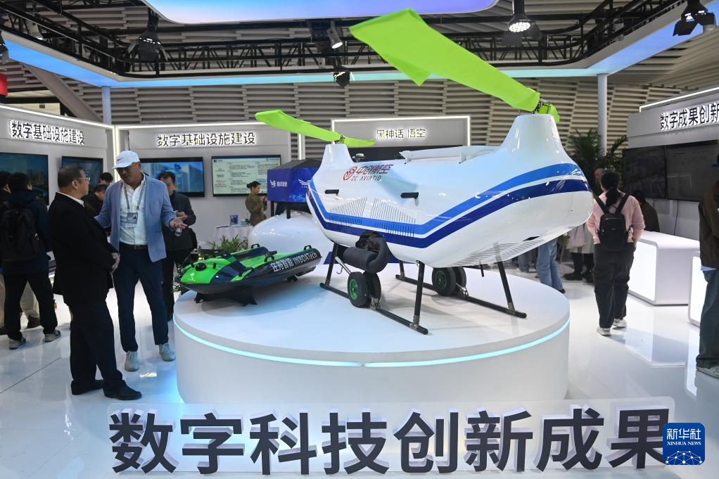11月19日,在2024年世界互聯(lián)網(wǎng)大會(huì)“互聯(lián)網(wǎng)之光”博覽會(huì)上,觀眾觀摩一架無(wú)人駕駛電動(dòng)航空器。