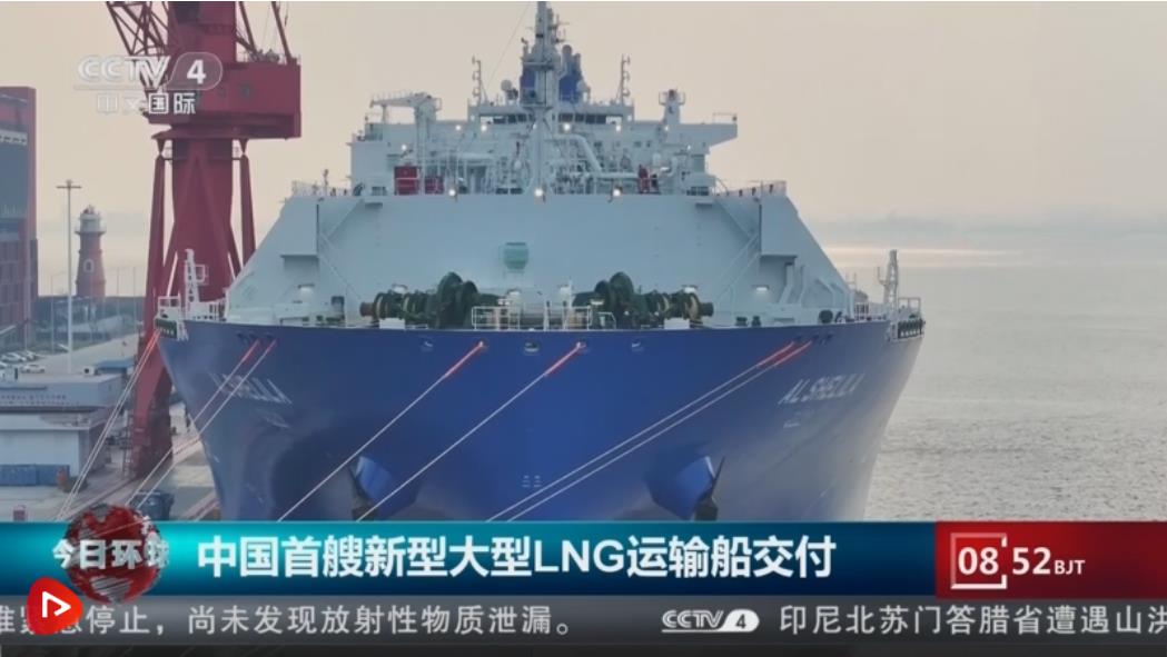 中國自主研制的首艘新型大型LNG液化天然氣運(yùn)輸船11月25日在上海交付國外用戶。這型船采用了國際先進(jìn)的新型貨艙系統(tǒng),一次運(yùn)輸量可滿足一個城市一個月的供給需求,填補(bǔ)了中國在該船型建造領(lǐng)域的空白。