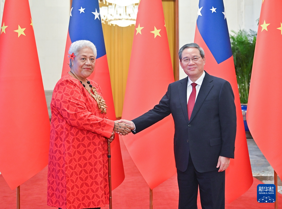 11月26日上午,國(guó)務(wù)院總理李強(qiáng)在北京人民大會(huì)堂同來(lái)華進(jìn)行正式訪問(wèn)的薩摩亞總理菲婭梅舉行會(huì)談。新華社記者 岳月偉 攝
