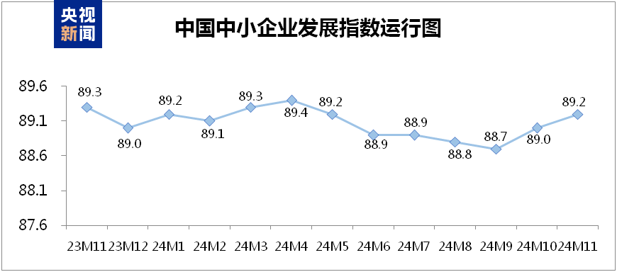 中國中小企業(yè)協(xié)會今天(10日)發(fā)布,11月中國中小企業(yè)發(fā)展指數(shù)為89.2,相比10月上升0.2點,連續(xù)2個月上升。