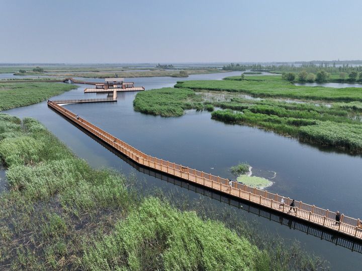 在中線,通過(guò)汛期洪水資源化利用,助力北方地區(qū)50多條河流生態(tài)復(fù)蘇。永定河、潮白河、滹沱河等一大批斷流多年的河流恢復(fù)全線通水,再現(xiàn)流動(dòng)之美。世界上最大、最深的“漏斗區(qū)”華北地區(qū)地下水位實(shí)現(xiàn)總體回升?!叭A北明珠”白洋淀淀區(qū)面積擴(kuò)大到近300平方公里,再現(xiàn)“荷塘葦海、鳥類天堂”勝景。