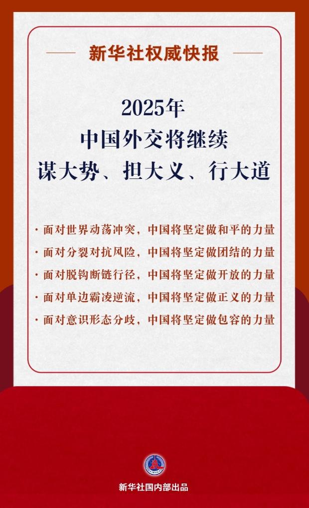 外交部介紹,2025年中國(guó)外交將繼續(xù)謀大勢(shì)、擔(dān)大義、行大道