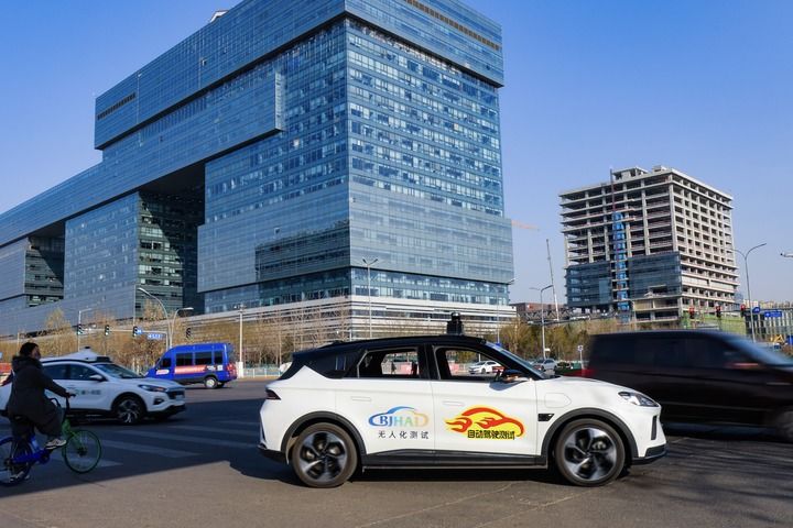 車內(nèi)無人自動(dòng)駕駛測(cè)試車輛在北京亦莊公開道路測(cè)試。(受訪者供圖)