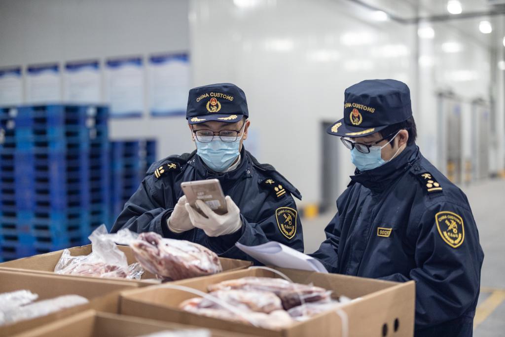 打開米白色的冷凍集裝箱,重慶海關所屬渝州海關監(jiān)管科副科長劉議凡與同事正仔細查驗一批來自歐洲的肉類。不久后它們將被送至川渝地區(qū)各大商超、火鍋店。