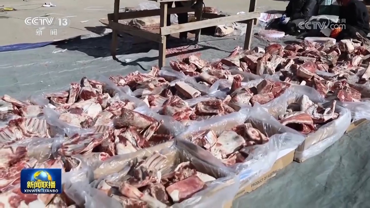 春節(jié)前夕,嘎旦村村委會的小院中,駐村工作隊(duì)長、第一書記吳奇洵和村干部一起,給大家分發(fā)剛剛從鄉(xiāng)政府領(lǐng)來的牛羊肉。