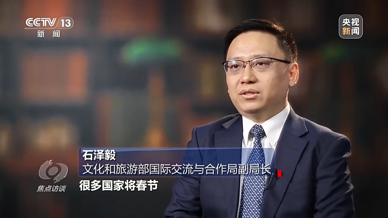 文化和旅游部國(guó)際交流與合作局副局長(zhǎng) 石澤毅:春節(jié)文化在全球廣泛傳播,為世界各國(guó)人民近距離感知中華文化打開(kāi)了一扇窗,也為促進(jìn)中外民眾相知相親、不同文明和合共生架起了一座橋。