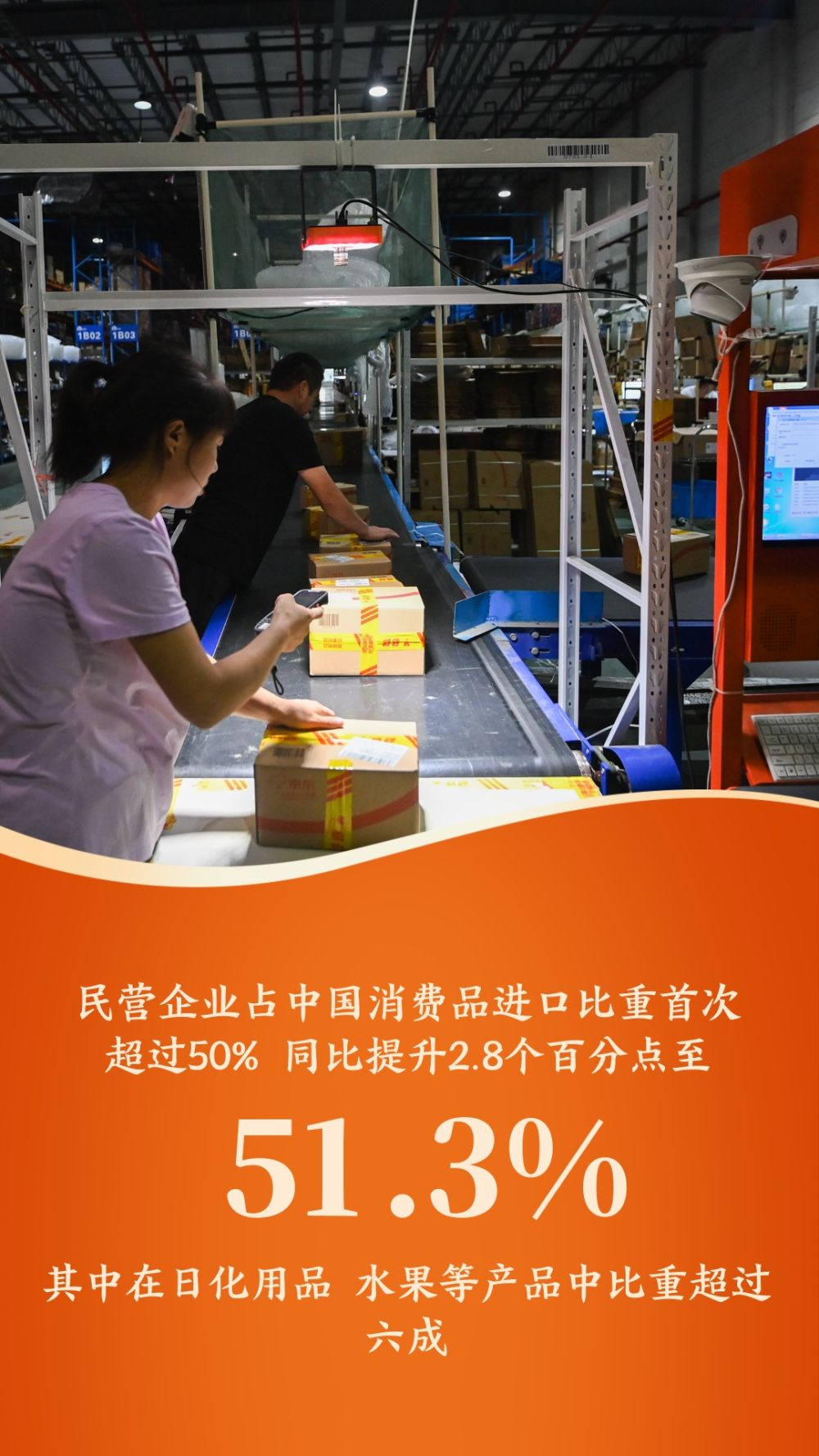 民營企業(yè)占我國消費(fèi)品進(jìn)口比重首次超過50%,同比提升2.8個百分點(diǎn)至51.3%,其中在日化用品、水果等產(chǎn)品中比重超過六成。