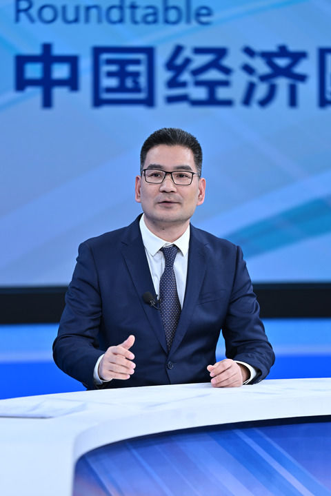 ??政府工作報告起草組成員、國務院研究室綜合一司副司長黃良浩在第十四期“中國經(jīng)濟圓桌會”錄制現(xiàn)場發(fā)言。新華社記者 李鑫 攝