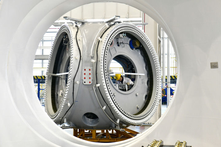 2025年2月22日,在三一重能(日照)風電設備制造有限公司,工作人員在風電設備生產(chǎn)車間忙碌。新華社記者 郭緒雷 攝