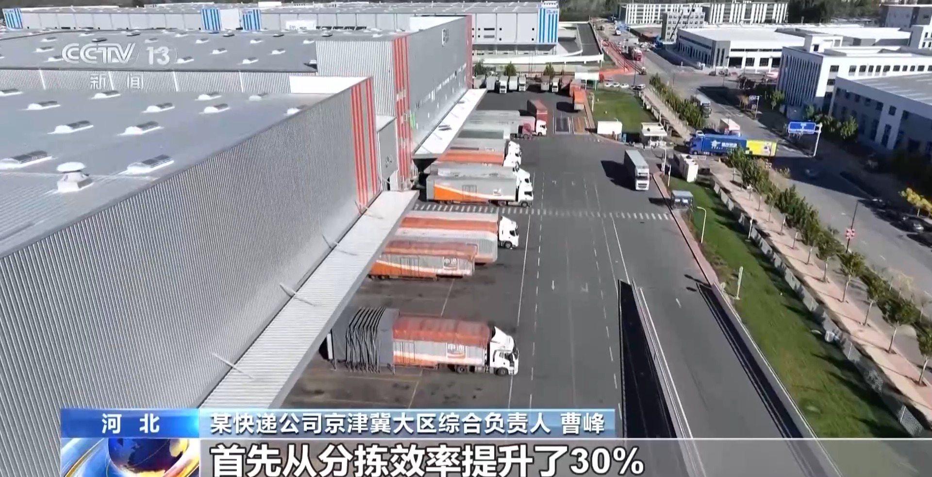 在廊坊固安的這家快遞公司華北轉(zhuǎn)運(yùn)中心,近百個進(jìn)出港卸貨口同時操作,全鏈路數(shù)智化設(shè)備同步運(yùn)轉(zhuǎn)。大量快遞包裹在運(yùn)輸帶上被快速掃描、分揀,整個過程都在智能管理系統(tǒng)的調(diào)配下完成,最快僅需10分鐘便可完成裝車。