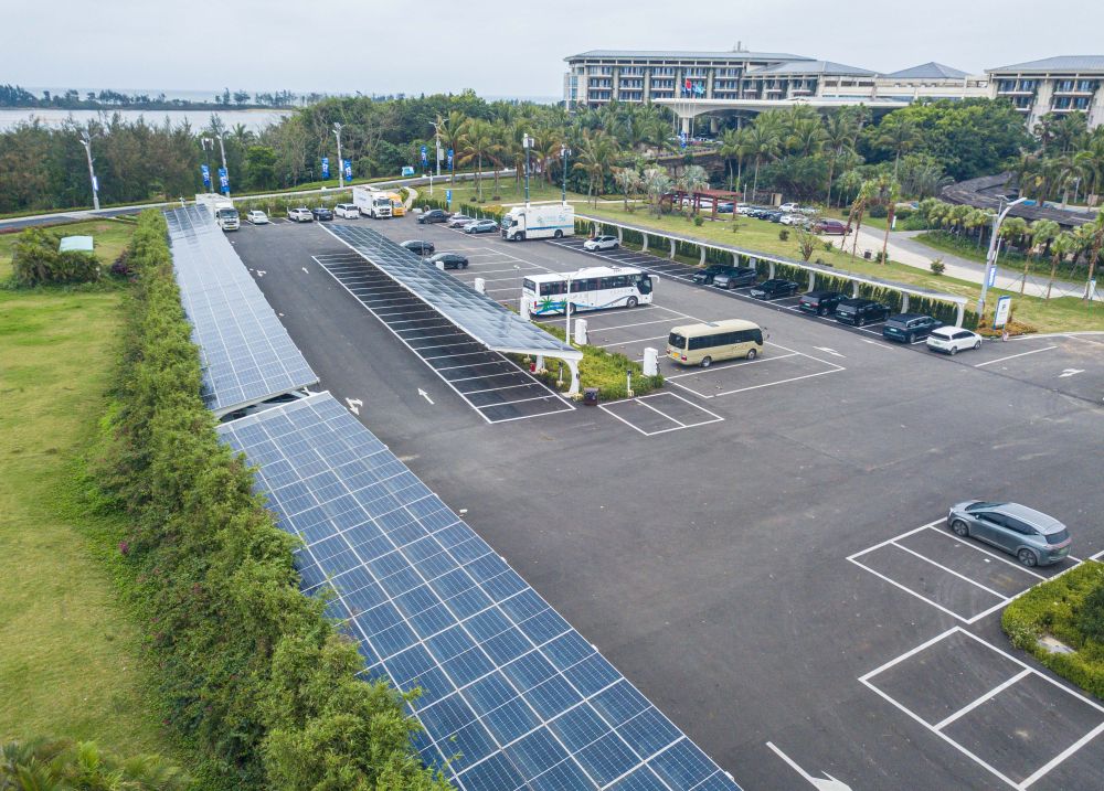 在博鰲零碳示范區(qū)拍攝的建有光伏發(fā)電設(shè)備的停車場(無人機照片,3月16日攝)。