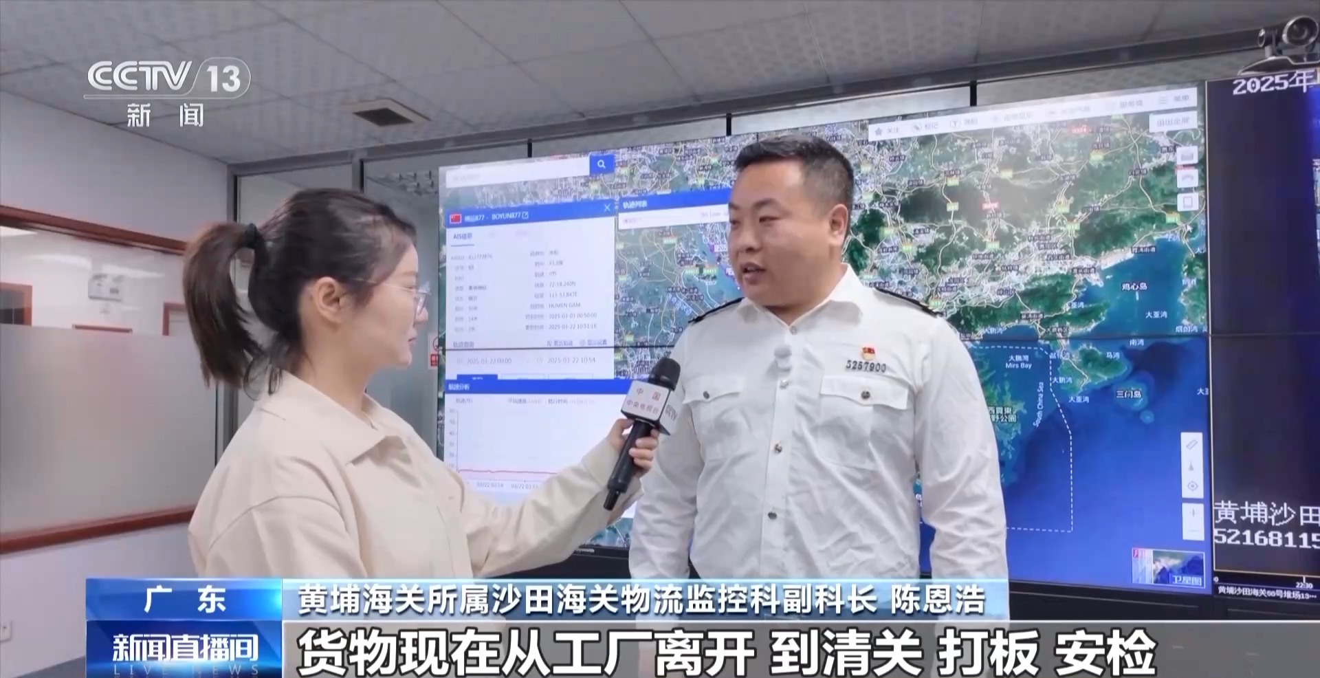 黃埔海關(guān)所屬沙田海關(guān)物流監(jiān)控科副科長(zhǎng) 陳恩浩:貨物現(xiàn)在從工廠離開,到清關(guān)、打板、安檢、裝船以及發(fā)運(yùn)整個(gè)環(huán)節(jié),最快可以在14個(gè)小時(shí)內(nèi)完成。我們還在不斷優(yōu)化流程、提高效率,未來(lái)預(yù)計(jì)還可以節(jié)約2到3小時(shí)。