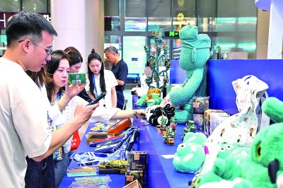 創(chuàng)意滿滿的文創(chuàng)產(chǎn)品帶來(lái)時(shí)尚潮流氣息——敦煌研究院的飛天系列絲巾、陜西歷史博物館的唐代仕女盲盒展現(xiàn)地域特色;在甘肅主題館,圓頭圓腦、憨態(tài)可掬的小神獸“蘭小五”成為引人駐足的“明星”;在“湖湘文創(chuàng)”展區(qū),竹片制作的扇子、飛盤、足球等文創(chuàng)產(chǎn)品新意十足;在文創(chuàng)中國(guó)展區(qū),數(shù)十座文化場(chǎng)館帶來(lái)了基于文物開發(fā)的文創(chuàng)產(chǎn)品,觀眾紛紛參與文創(chuàng)盲盒、集章打卡等活動(dòng)。