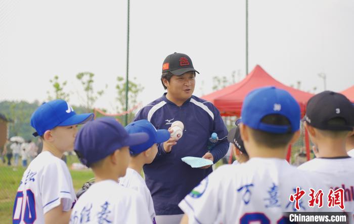 5月25日,在江西省南昌市的棒球場(chǎng)上,臺(tái)青吳軍平正在訓(xùn)練球員。吳敏 攝