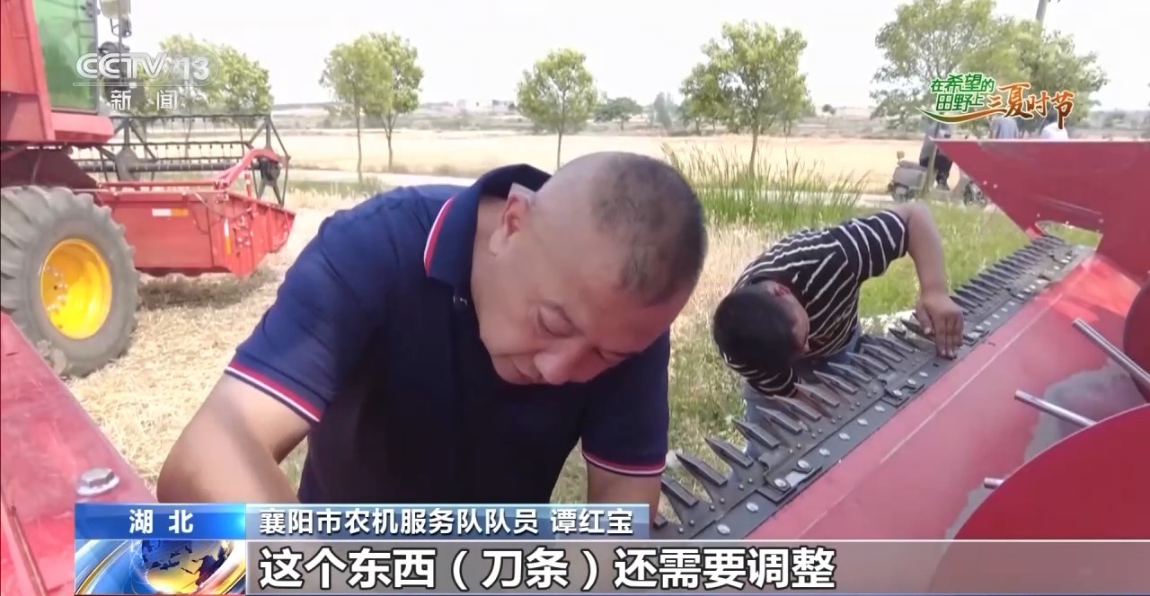 農(nóng)機(jī)維修也是夏收中非常重要的一個(gè)環(huán)節(jié)。在湖北省襄陽市襄州區(qū)黃龍鎮(zhèn)潘明村的1000畝大田里,6臺收割機(jī)正趕在雨前搶收。突然,一臺收割機(jī)出現(xiàn)故障止步不前,機(jī)手撥打維修電話20分鐘后,農(nóng)機(jī)服務(wù)車趕到了麥田旁。經(jīng)過檢修發(fā)現(xiàn),這臺收割機(jī)刀條發(fā)生了斷裂。