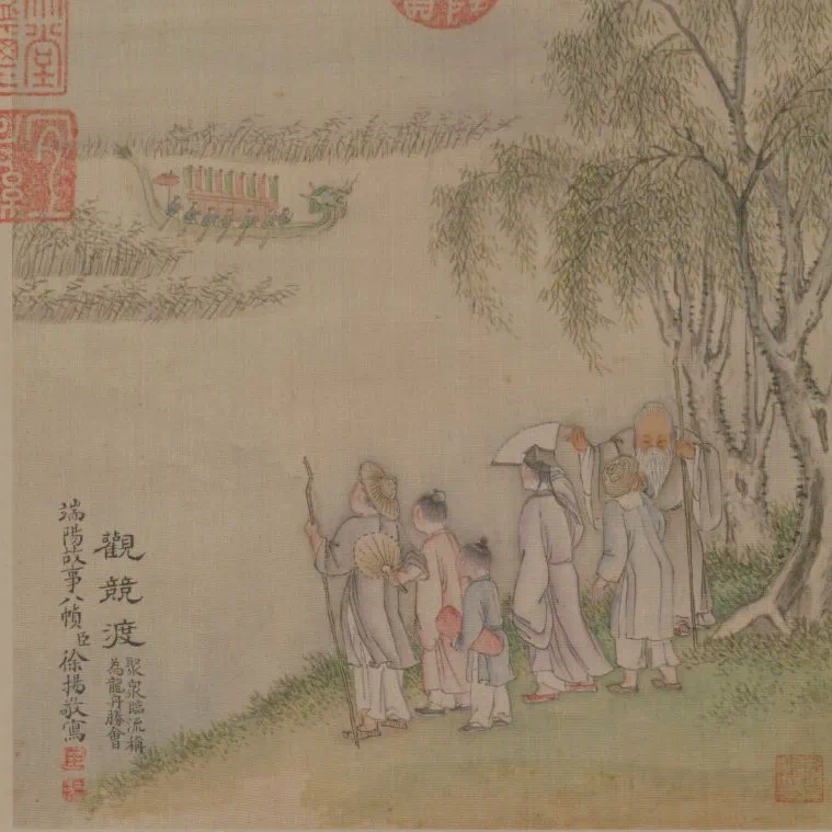 △《觀競(jìng)渡》,題:“聚眾臨流稱為龍舟勝會(huì)?!?/p>