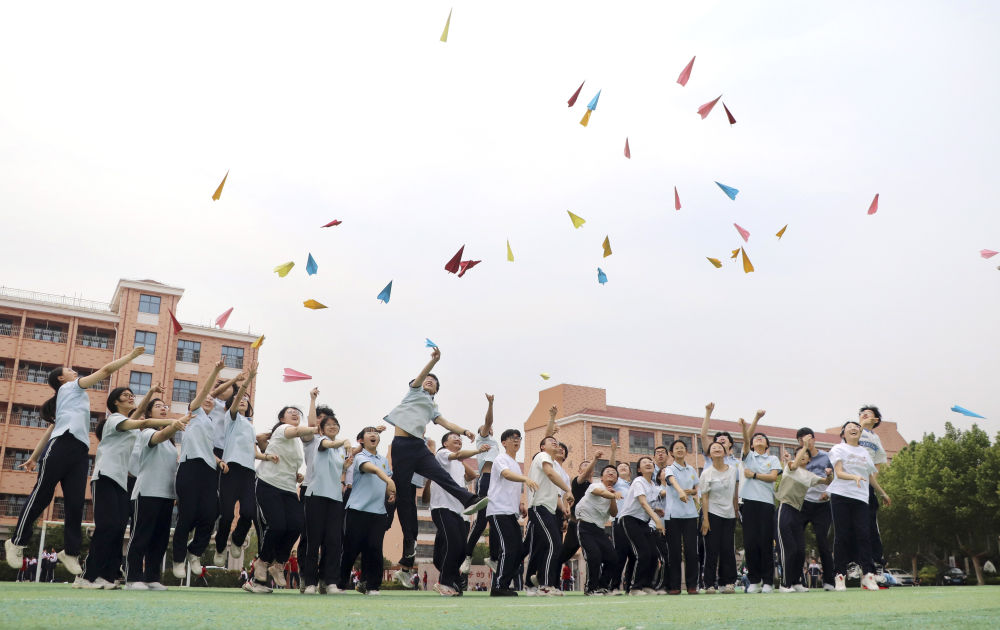5月22日,在山東省高密市第五中學(xué),高三學(xué)生將寫(xiě)有夢(mèng)想的紙飛機(jī)拋向空中。