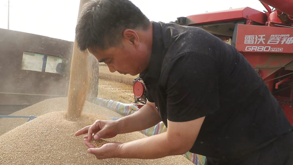 “今年我種植了優(yōu)質(zhì)小麥1200多畝。根據(jù)目前收割的情況來看,今年又是個豐收年,大概的產(chǎn)量就是600公斤以上?!痹诤幽鲜∩糖鹗辛簣@區(qū)李莊鎮(zhèn)潘堂村,當?shù)胤N糧大戶閆照峰的喜悅溢于言表。