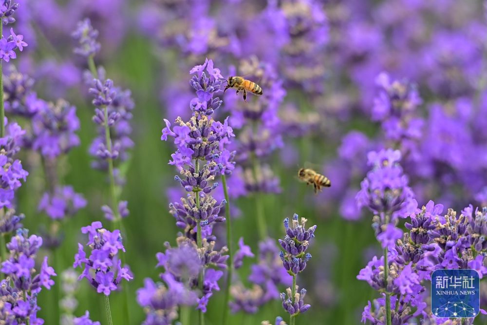 這是在新疆伊犁哈薩克自治州霍城縣解憂公主薰衣草農(nóng)場(chǎng)拍攝的薰衣草花田(6月14日攝)。