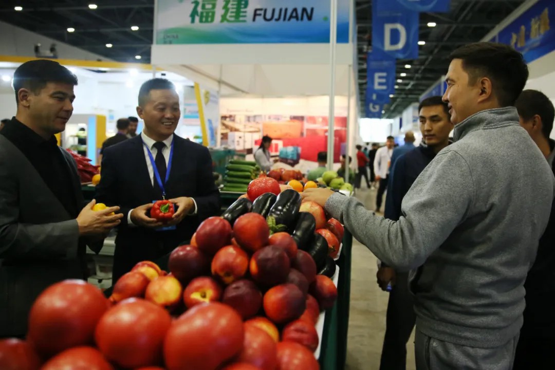 當(dāng)?shù)貢r(shí)間2024年8月23日,第十九屆哈薩克斯坦—中國商品展覽會(huì)在哈薩克斯坦首都阿斯塔納世博園國際展覽中心開幕。圖為來自中國的精品果蔬吸引不少觀眾前來問詢。 中新社記者 單璐 攝