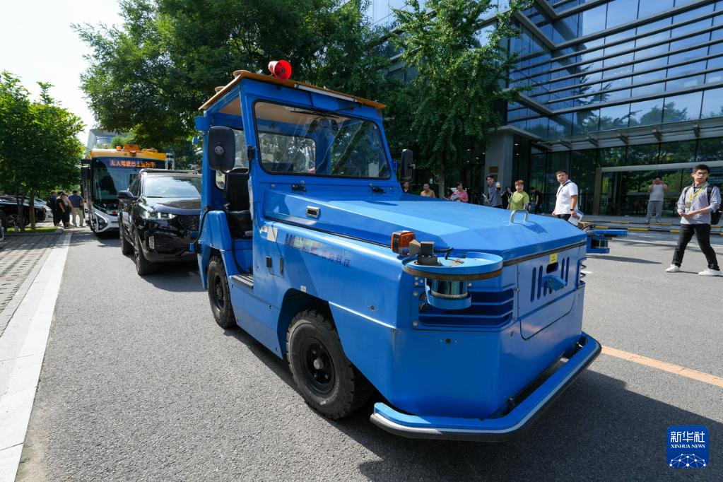6月16日,在北京馭勢(shì)科技拍攝的一款用于機(jī)場(chǎng)物流作業(yè)的無(wú)人駕駛牽引車。新華社記者 鞠煥宗 攝