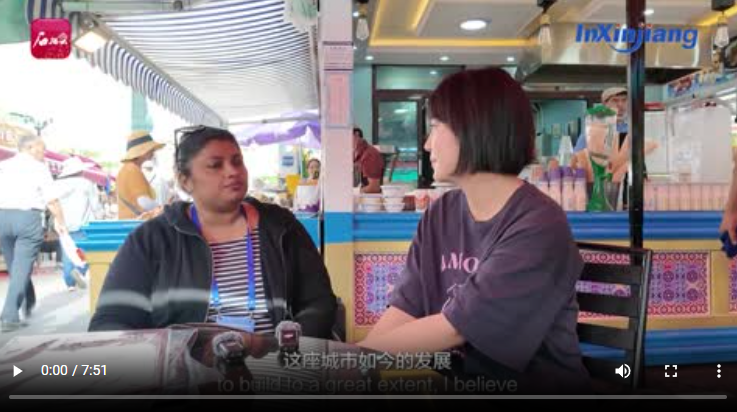 其間,斯里蘭卡《每日金融時報》副主編查魯米妮·德·席爾瓦和《InXinjiang》欄目記者一同開啟了體驗新疆文化的一天。查魯米妮·德·席爾瓦表示,新疆處處生機(jī)勃勃,充滿了文化氣息。在來新疆之前,她的同事告訴她“新疆很漂亮,你一定會愛上新疆”。來到新疆之后,查魯米妮·德·席爾瓦表示,新疆的確讓她大開眼界,期待下次帶家人再來新疆。