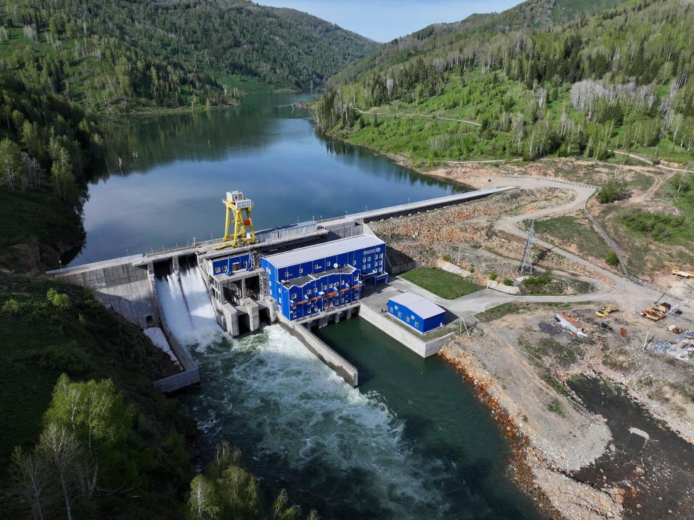 這是2025年5月8日在哈薩克斯坦東哈州拍攝的圖爾古孫水電站(無人機(jī)照片)。(圖片來源:新華社)