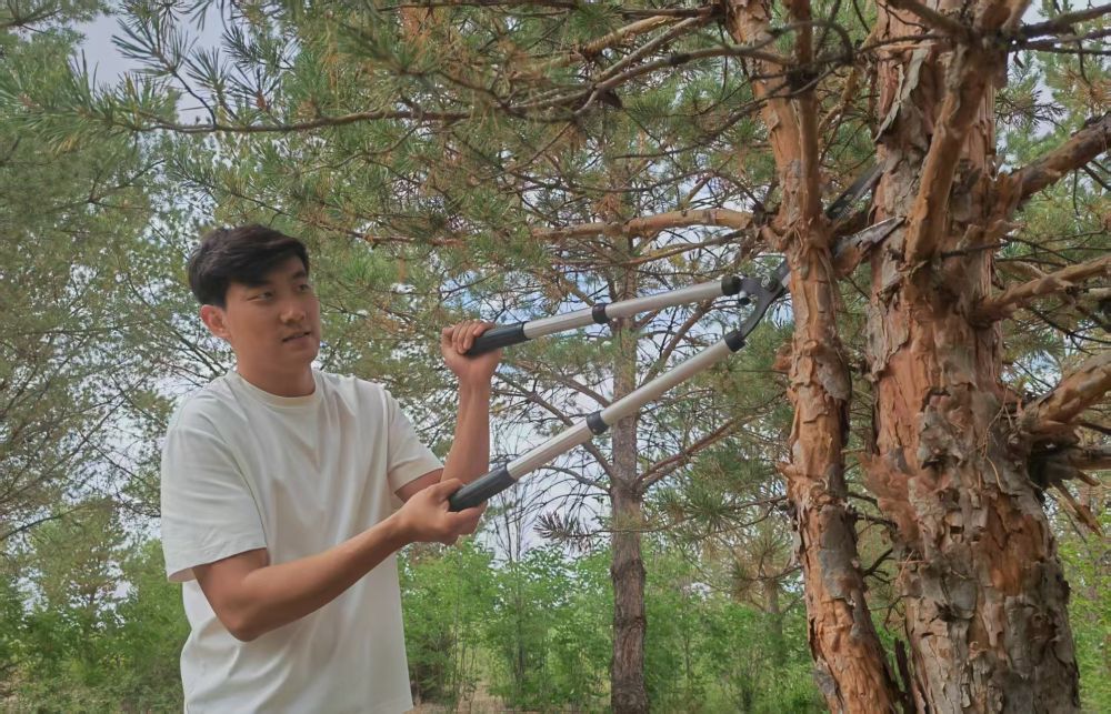 2017年,在爺爺?shù)膸ьI(lǐng)下,石健陽(yáng)正式投身植綠事業(yè)?!斑^(guò)去沙害嚴(yán)重,老一輩治沙人最迫切的是要定住風(fēng)沙,讓地面先綠起來(lái),所以當(dāng)時(shí)的樹種主要是生長(zhǎng)快的楊樹?!笔£?yáng)說(shuō),“幾十年過(guò)去,楊樹林老化嚴(yán)重,出現(xiàn)大面積枯死的情況。我們現(xiàn)在陸續(xù)對(duì)老化的林地進(jìn)行樹種更換,補(bǔ)種四季常青、生命周期更長(zhǎng)的樟子松,目前已經(jīng)補(bǔ)種了5萬(wàn)畝。”