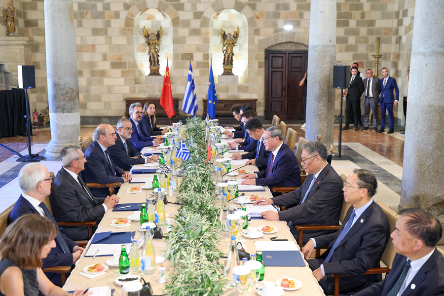李強(qiáng)指出,中方愿同希方拉緊合作紐帶,更好發(fā)揮互補(bǔ)優(yōu)勢(shì),高質(zhì)量推進(jìn)比雷埃夫斯港總規(guī)劃落地,推動(dòng)兩國(guó)貿(mào)易更加優(yōu)化平衡發(fā)展,加強(qiáng)在清潔能源、輸變電、人工智能等領(lǐng)域合作,培育更多經(jīng)濟(jì)新增長(zhǎng)點(diǎn)。中方支持和鼓勵(lì)更多有實(shí)力的中國(guó)企業(yè)根據(jù)市場(chǎng)原則,積極推進(jìn)對(duì)希臘投資。雙方要加強(qiáng)文明互鑒,密切旅游等人文交流,增進(jìn)兩國(guó)人民友好。中歐之間有著廣泛的共同利益。當(dāng)前全球單邊主義、保護(hù)主義愈演愈烈,中歐應(yīng)共同發(fā)出倡導(dǎo)多邊主義和自由貿(mào)易的積極聲音,攜手維護(hù)經(jīng)濟(jì)全球化和國(guó)際經(jīng)貿(mào)秩序。希望希臘繼續(xù)為推進(jìn)中歐關(guān)系發(fā)展發(fā)揮建設(shè)性作用。