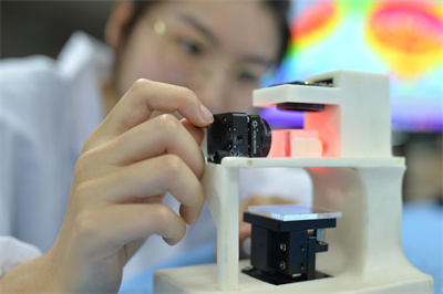 青島理工大學(xué)(黃島校區(qū))理學(xué)院實(shí)驗(yàn)室,學(xué)生在調(diào)試完全自主研發(fā)的數(shù)字全息顯微鏡。王海濱攝/光明圖片