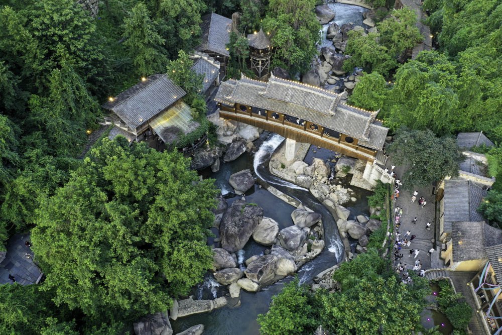 修復(fù)后的生態(tài)資源如何發(fā)揮經(jīng)濟(jì)效益?2010年,廣信區(qū)引進(jìn)九牛文旅集團(tuán),以峽谷漂流為旅游發(fā)展切入點(diǎn),花費(fèi)10多年時(shí)間一步步打造出一個(gè)集山水人文景觀、民俗體驗(yàn)、活動(dòng)演藝于一體的度假旅游區(qū)。九牛文旅集團(tuán)副總裁熊慧介紹,為了“給游客一個(gè)來(lái)的理由”,公司在110多米高的懸崖上凌空打造出“懸崖民宿”,客房的設(shè)計(jì)布局各不相同,房間地面不是傳統(tǒng)的地板,而是透明的懸空玻璃,游客站在床邊,低頭就能看到飛瀉的瀑布和流淌的溪水。