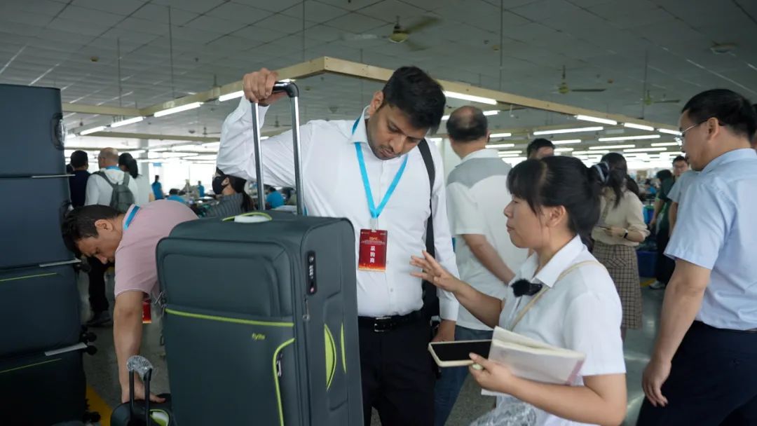 最早,當(dāng)?shù)刈龅氖遣剂喟?,用服裝廠的邊角料拼的。如今,產(chǎn)品已從最初的手提包、布袋,升級為拉桿箱、背包等。有的帶水杯架,甚至還能自己稱重、有充電USB接口……