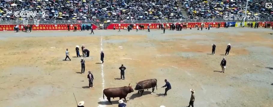 在位于四川涼山的普格縣,傳統(tǒng)點(diǎn)火儀式拉開(kāi)了當(dāng)?shù)叵盗谢顒?dòng)的序幕,傳統(tǒng)歌舞千人朵洛荷驚艷四方。身著五彩彝繡盛裝的姑娘們手持黃傘,隨悠揚(yáng)旋律翩躚起舞。斗牛比賽在普格縣火把廣場(chǎng)上演巔峰對(duì)決,強(qiáng)壯的公牛的每一次抵角、閃躲都引得現(xiàn)場(chǎng)一片歡呼。
