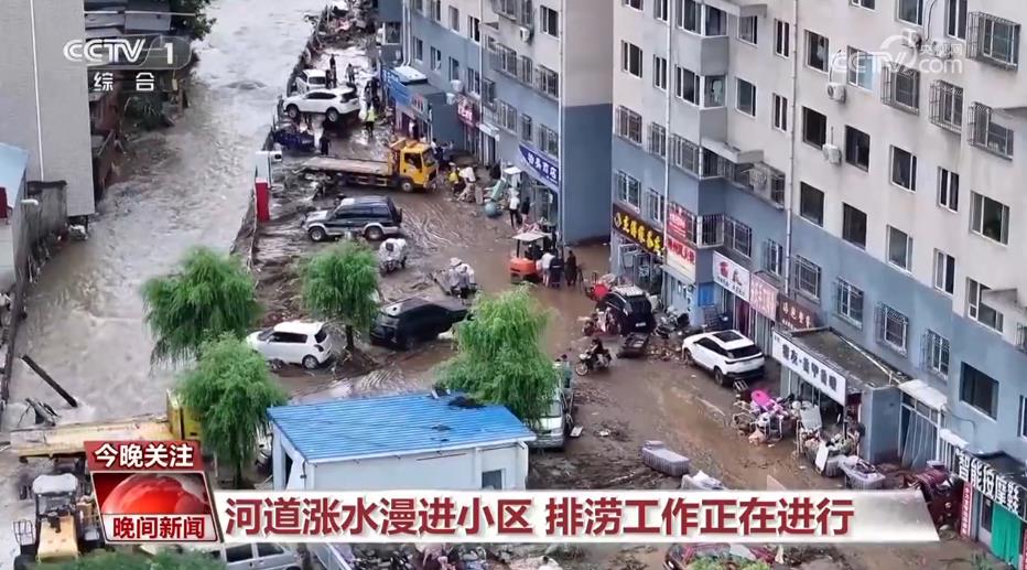 河道漲水漫進(jìn)小區(qū) 排澇工作正在進(jìn)行
