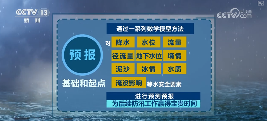 預(yù)報(bào)是基礎(chǔ)和起點(diǎn),通過一系列數(shù)學(xué)模型方法,對(duì)降水、水位、流量、徑流量、地下水位、墑情、泥沙、冰情、水質(zhì)、淹沒影響等水安全要素進(jìn)行預(yù)測(cè)預(yù)報(bào),為后續(xù)防汛工作贏得寶貴時(shí)間。