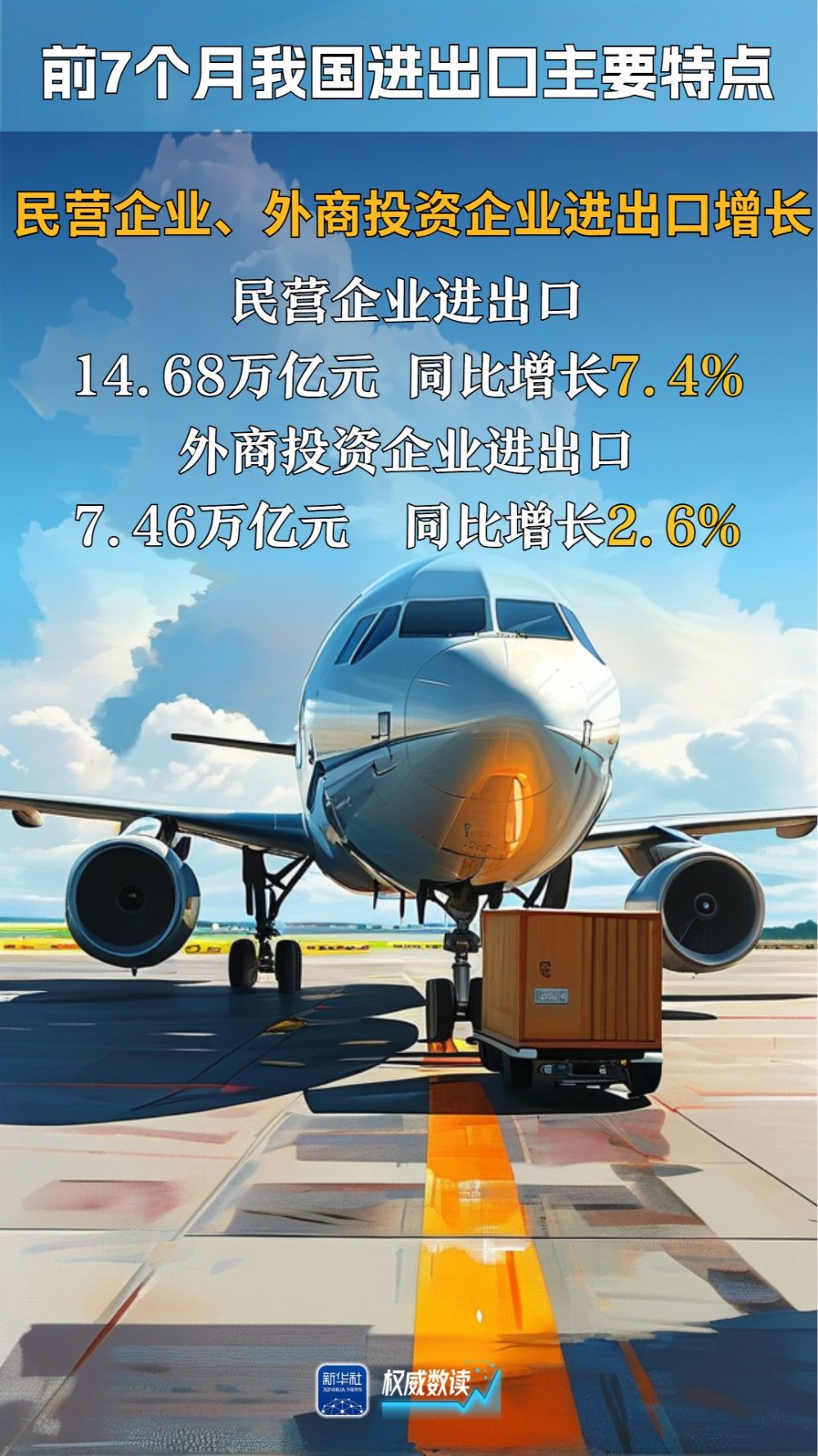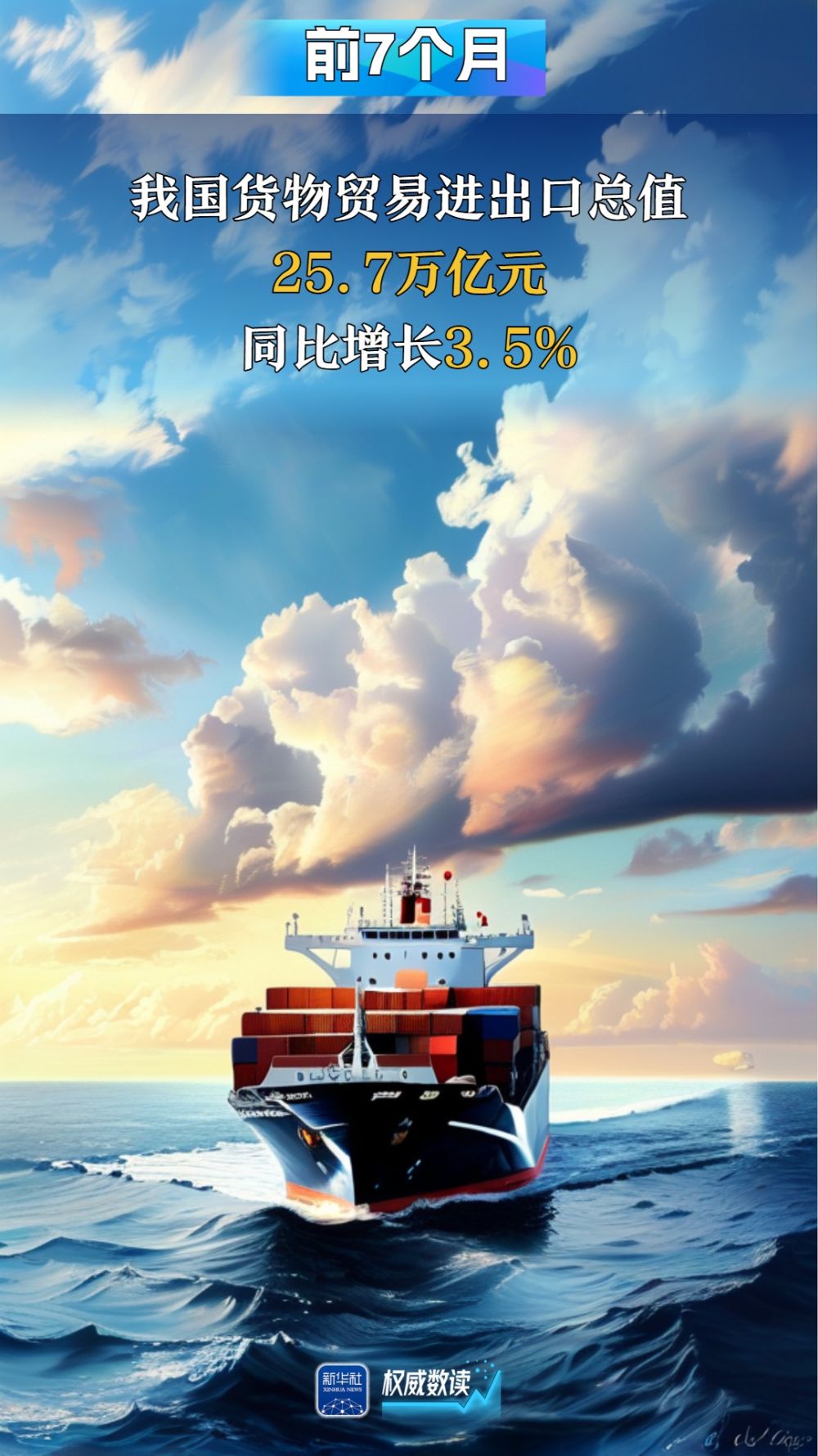 海關(guān)總署7日發(fā)布數(shù)據(jù)顯示,今年前7個(gè)月,我國貨物貿(mào)易進(jìn)出口總值25.7萬億元人民幣,同比增長(zhǎng)3.5%。面對(duì)復(fù)雜外部環(huán)境,我國外貿(mào)運(yùn)行保持向上向好勢(shì)頭,經(jīng)濟(jì)運(yùn)行穩(wěn)中有進(jìn)。