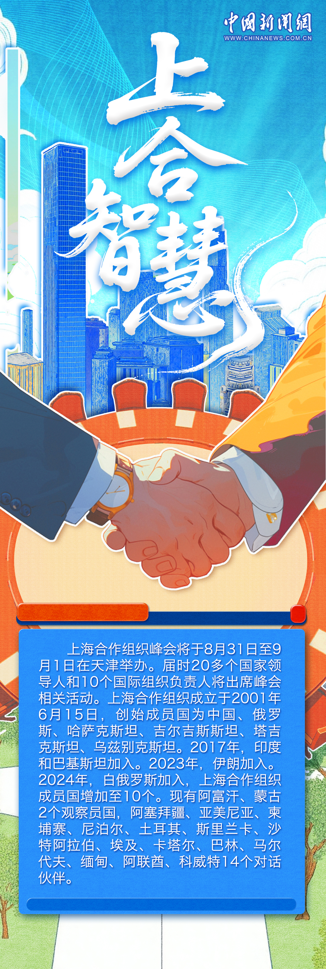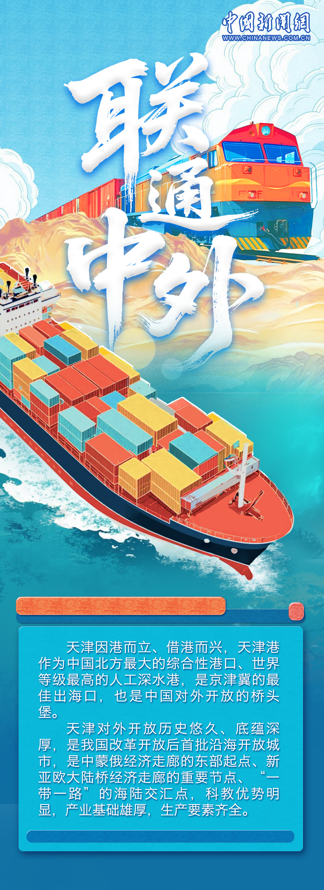 天津文化底蘊厚重,有著悠久的商業(yè)文化和航運文化,作為中國首批沿海開放城市,依港而生、向海而生。上合組織峰會將于8月31日至9月1日在天津舉辦,上合進入“天津時間”,世界期待“上合智慧”。一組海報,帶你領略天津的開放風采與澎湃動能。