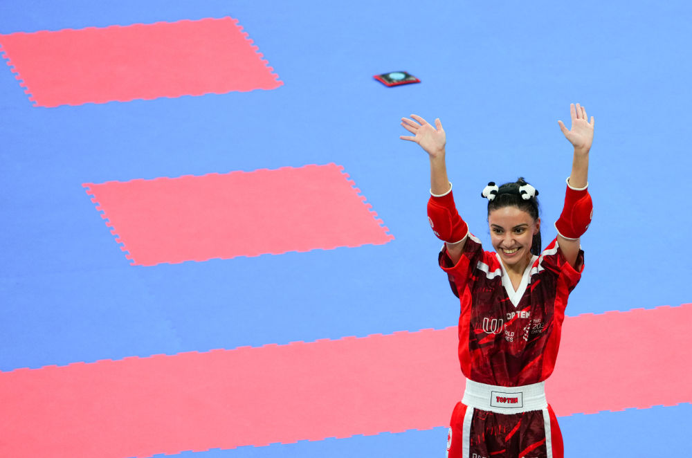 土耳其姑娘克倫奇是重度熊貓愛好者,贏下自由搏擊女子半接觸50公斤級半決賽后,她從容摘下護具,拿出一枚熊貓發(fā)卡戴在頭上。而她的背包里,足足塞了13個熊貓紀(jì)念品。
