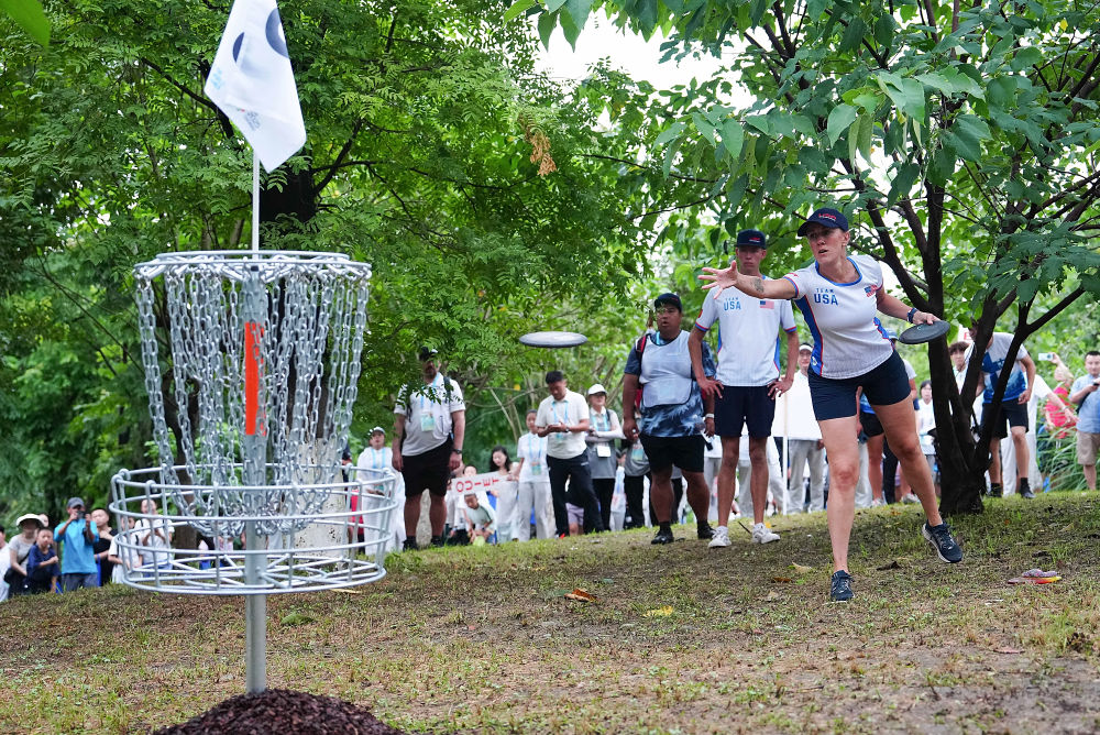 擲準(zhǔn)飛盤比賽在高新區(qū)桂溪生態(tài)公園舉行,觀眾既可登上主看臺近距離觀賽,也能在公園周邊空地的指定區(qū)域自由觀賽。奧地利選手納拉特很享受比賽過程,“我喜歡這個場地,有草地、有樹木、有湖泊,滿眼都是綠色”。