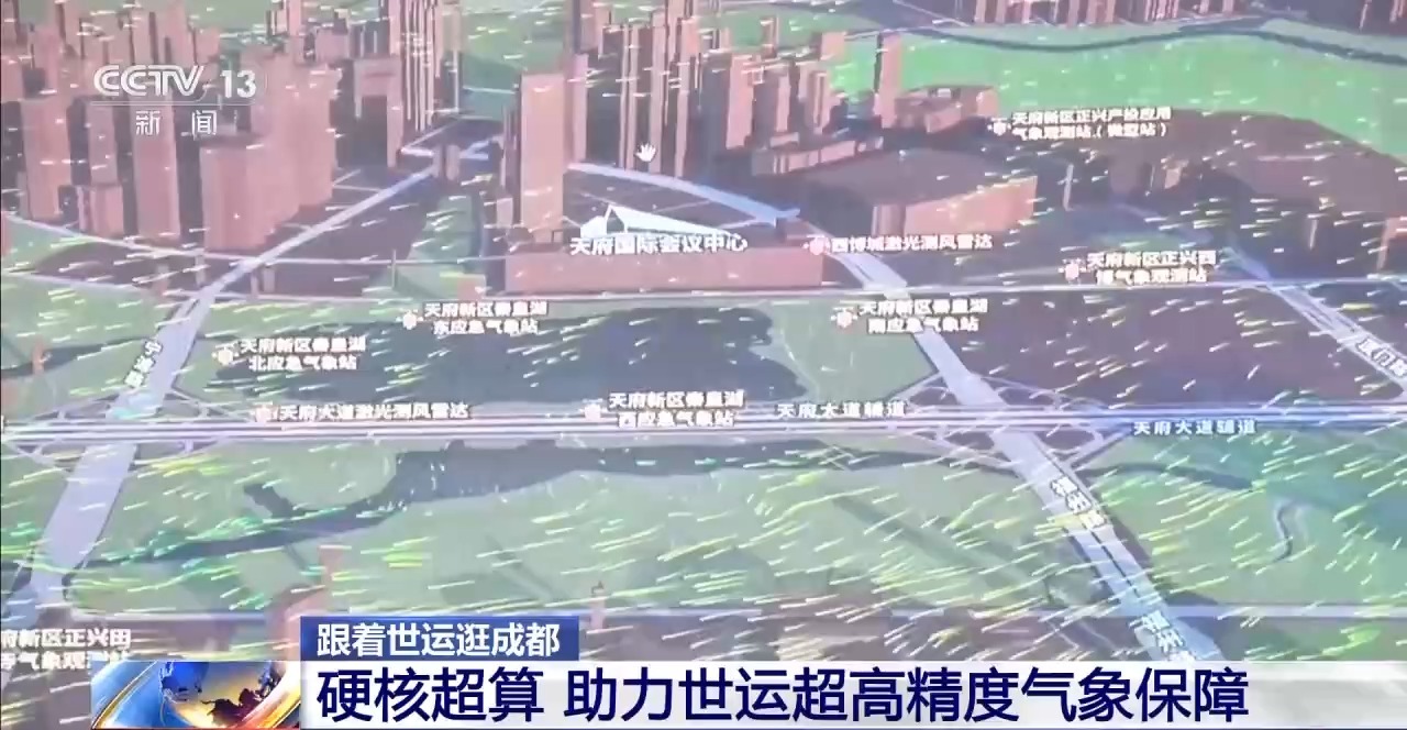世運(yùn)會(huì)比賽期間,青藏高原氣象研究院聯(lián)合成都市氣象局,依托國家超級計(jì)算成都中心開展了超高分辨率數(shù)值天氣預(yù)報(bào)。常規(guī)天氣預(yù)報(bào)能精確到1公里乘1公里的區(qū)域,而現(xiàn)在預(yù)報(bào)精度提升至10米乘10米,實(shí)現(xiàn)了從公里級到米級的跨越。