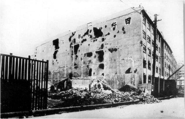 四行倉(cāng)庫(kù)保衛(wèi)戰(zhàn)結(jié)束后滿(mǎn)目瘡痍的四行倉(cāng)庫(kù)西墻 上海四行倉(cāng)庫(kù)抗戰(zhàn)紀(jì)念館供圖