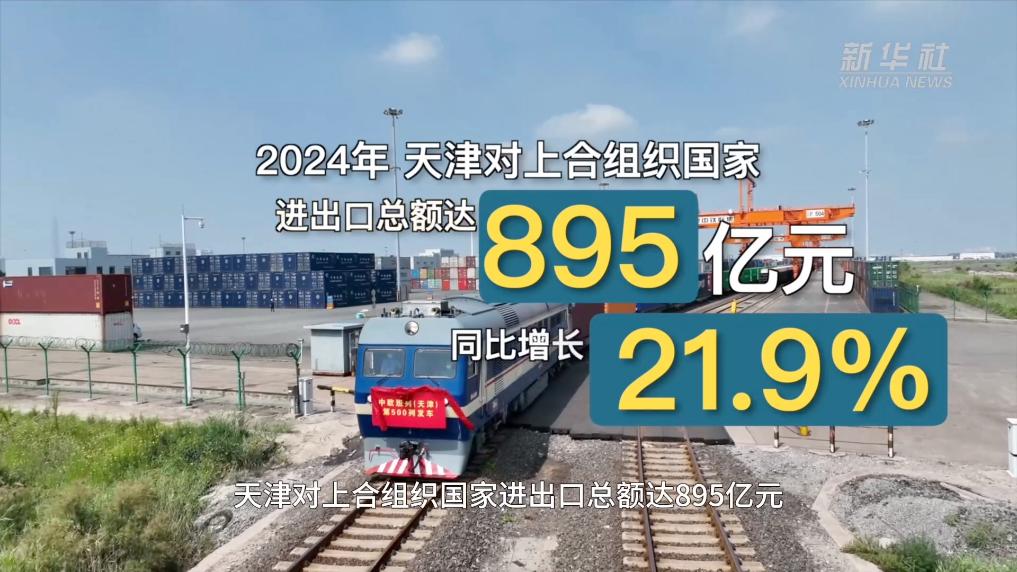 2024年,天津?qū)ι虾辖M織國家進(jìn)出口總額達(dá)895億元,同比增長21.9%。