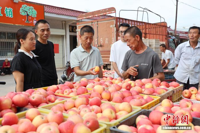 村內(nèi)采摘忙不停,村外交易同樣火熱。在洛川縣永鄉(xiāng)鎮(zhèn)東井村蘋果物流交易市場(chǎng),一筐筐剛從果園運(yùn)來(lái)的早熟蘋果整齊碼放,稱重、記賬、裝車等環(huán)節(jié)有條不紊,購(gòu)銷兩旺的場(chǎng)景格外熱鬧。